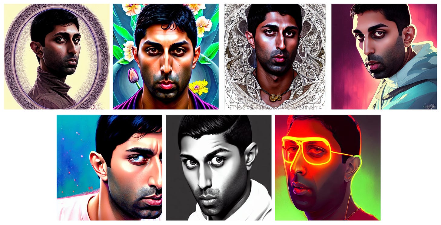 Last but not least, this week’s Be Real pic is a little different cause I’m using AI here instead. I uploaded 7 selfies to a free service called Vana to see what kind of portraits it could generate. The 7 pictures I uploaded are on top - 7 of my favorite AI generations are on the bottom.